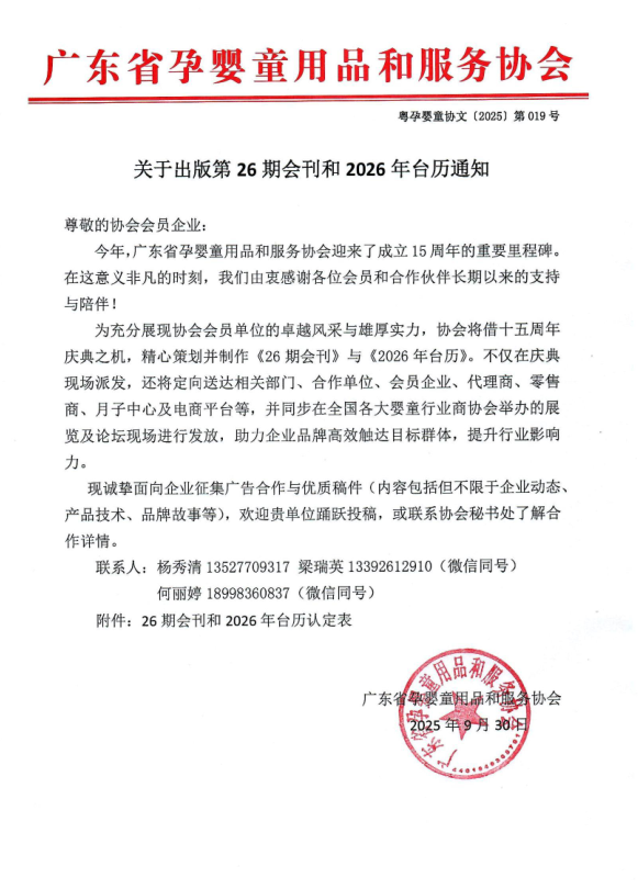 ·關于出版《廣東孕嬰童》會刊第三期認刊廣告及提供企業報道資料的通知